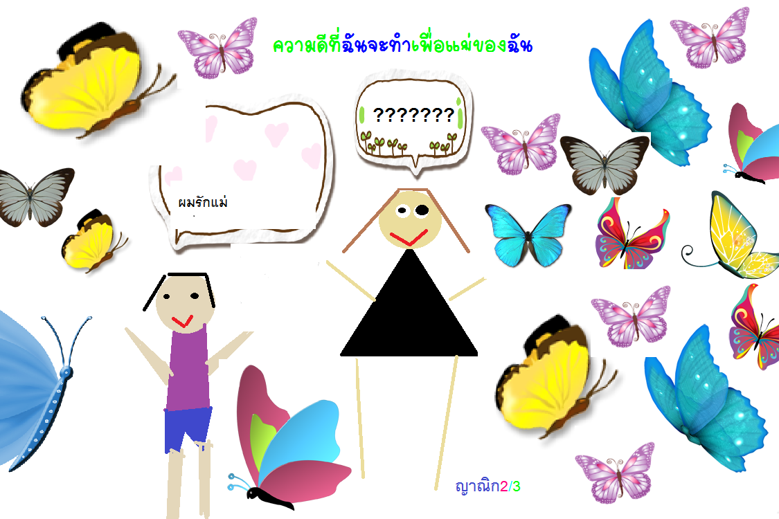 ผลงานนักเรียนชั้นประถมศึกษาปีที่ 2/3 การวาดภาพจากโปรแกรมเพ้นท์ หัวข้อ “ความดีที่ฉันจะทำ เพื่อแม่ของฉัน”